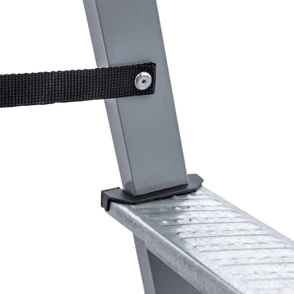 - Стальные оцинкованные рифлёные ступени шириной 70 мм с дополнительными рёбрами жёсткости для надёжного сцепления.