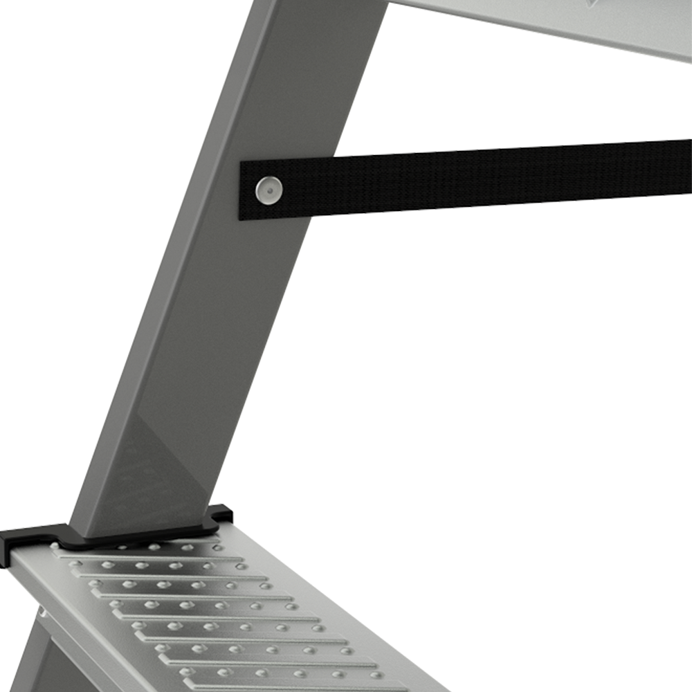 - Усиленное крепление стоек заднего каркаса с развальцовкой. Повышает устойчивость стремянки.