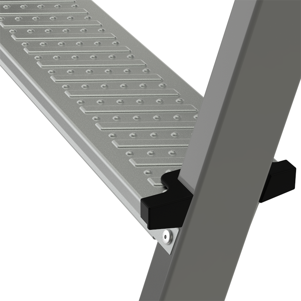 - Закруглённые безопасные края ступеней и площадки смягчают контакт с голенью, предотвращают травмы.