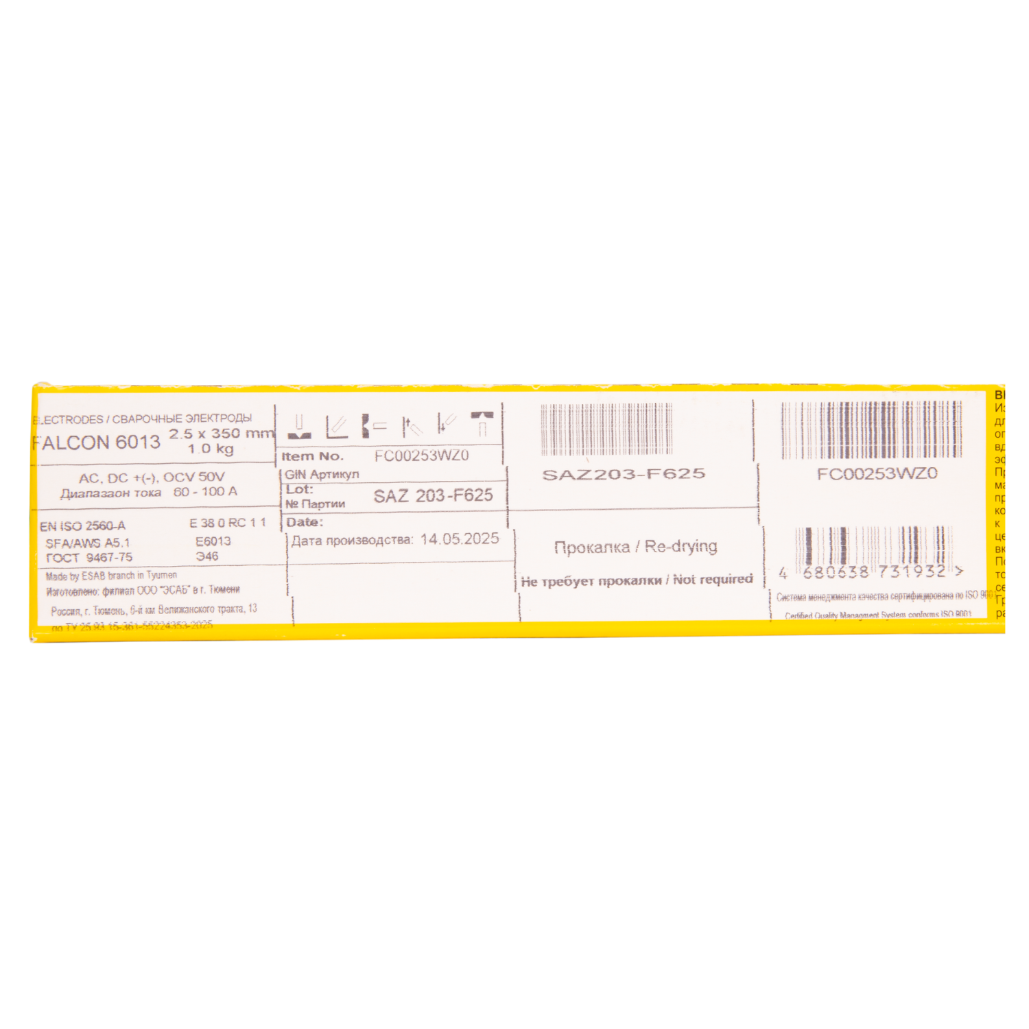 Электроды FALCON 6013 2.5*350мм 1 кг ESAB