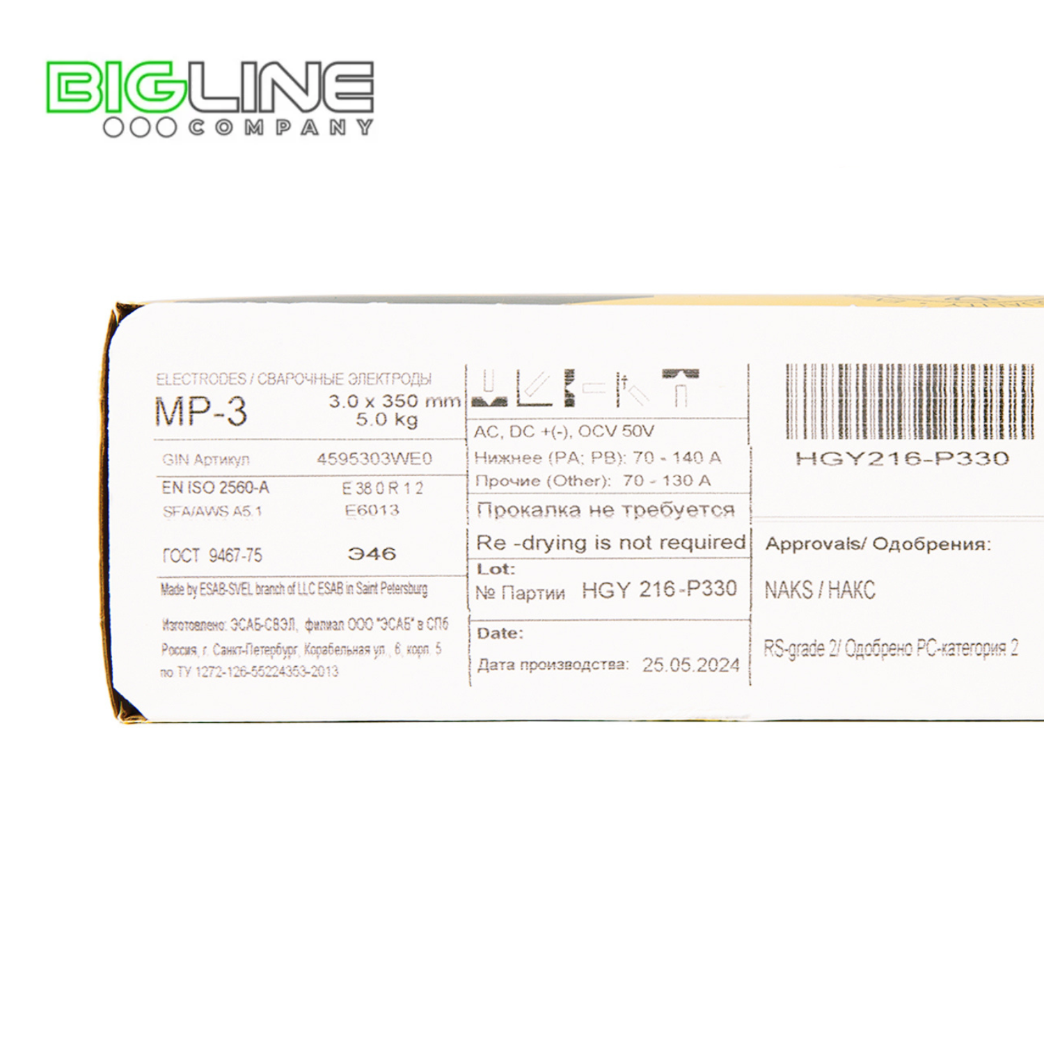 Купить электроды МР-3 3,0×350 мм ESAB в интернет-магазине BIGLINE. Доставка по Казахстану.
