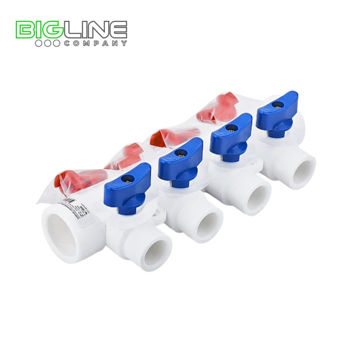 Коллектор с кранами системы ALPHA используется для распределения тепла и воды в системах отопления и водоснабжения из полипропилена. PP-R коллектор имеет несколько выходов, которые соединяются с трубами через сварку. На выходах коллектора имеются шаровые краны, которые перекрывают поток теплоносителя через отдельный выход.